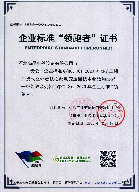 企業(yè)標準領(lǐng)跑者證書